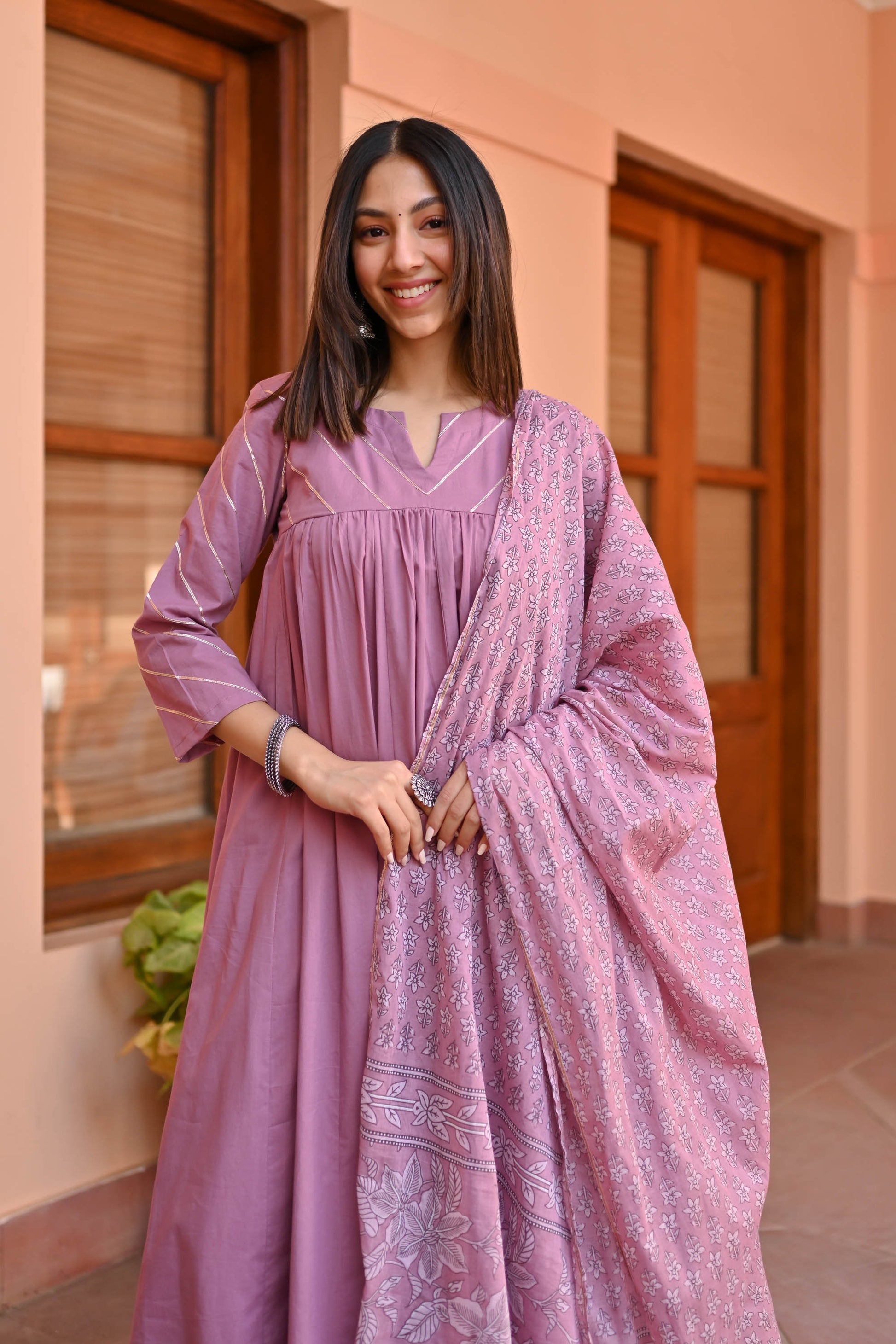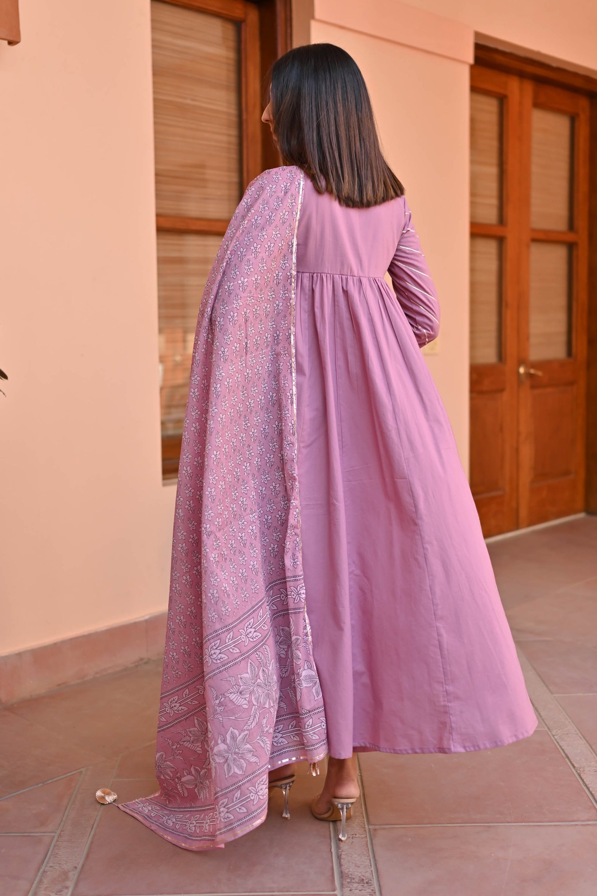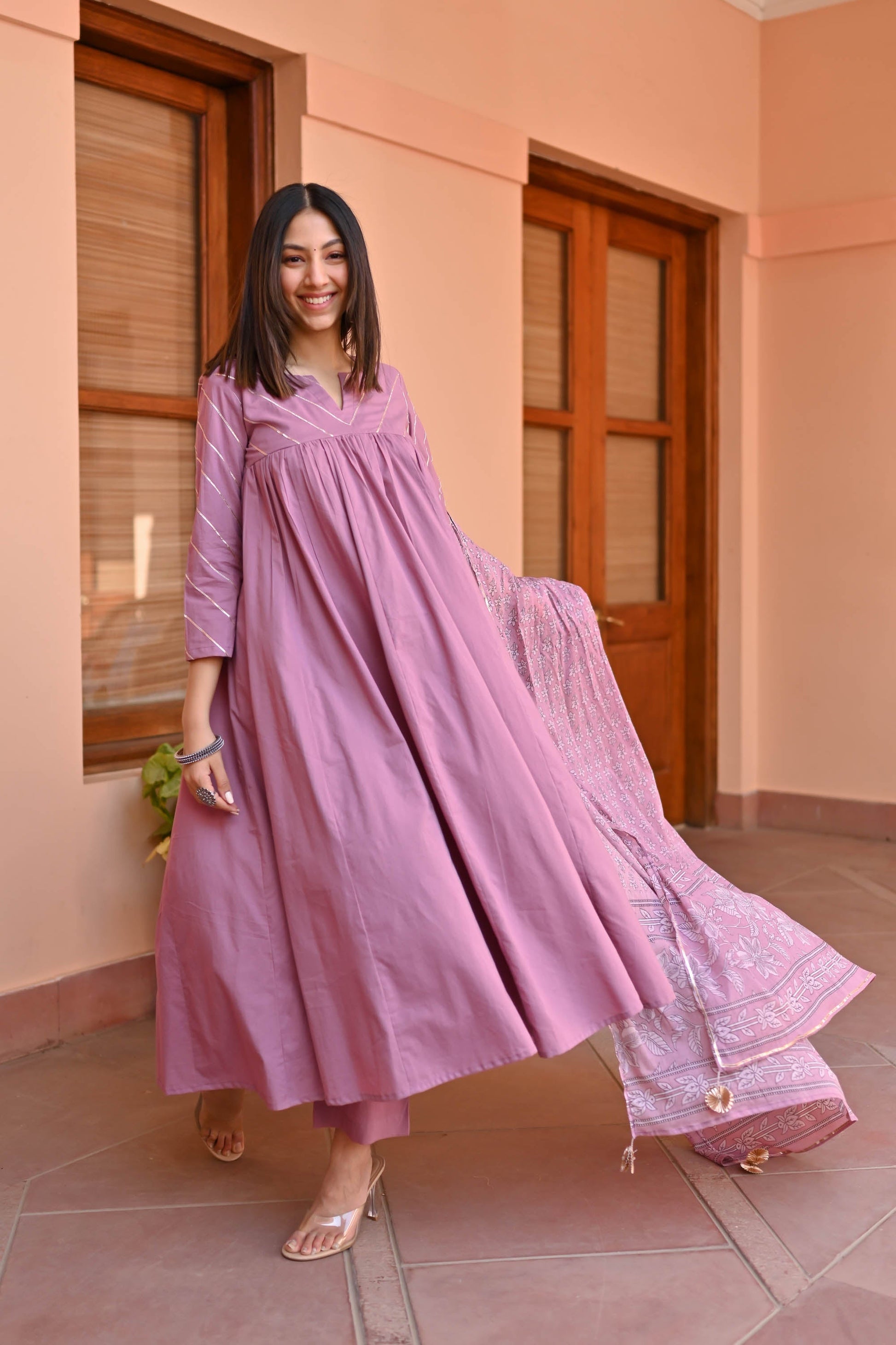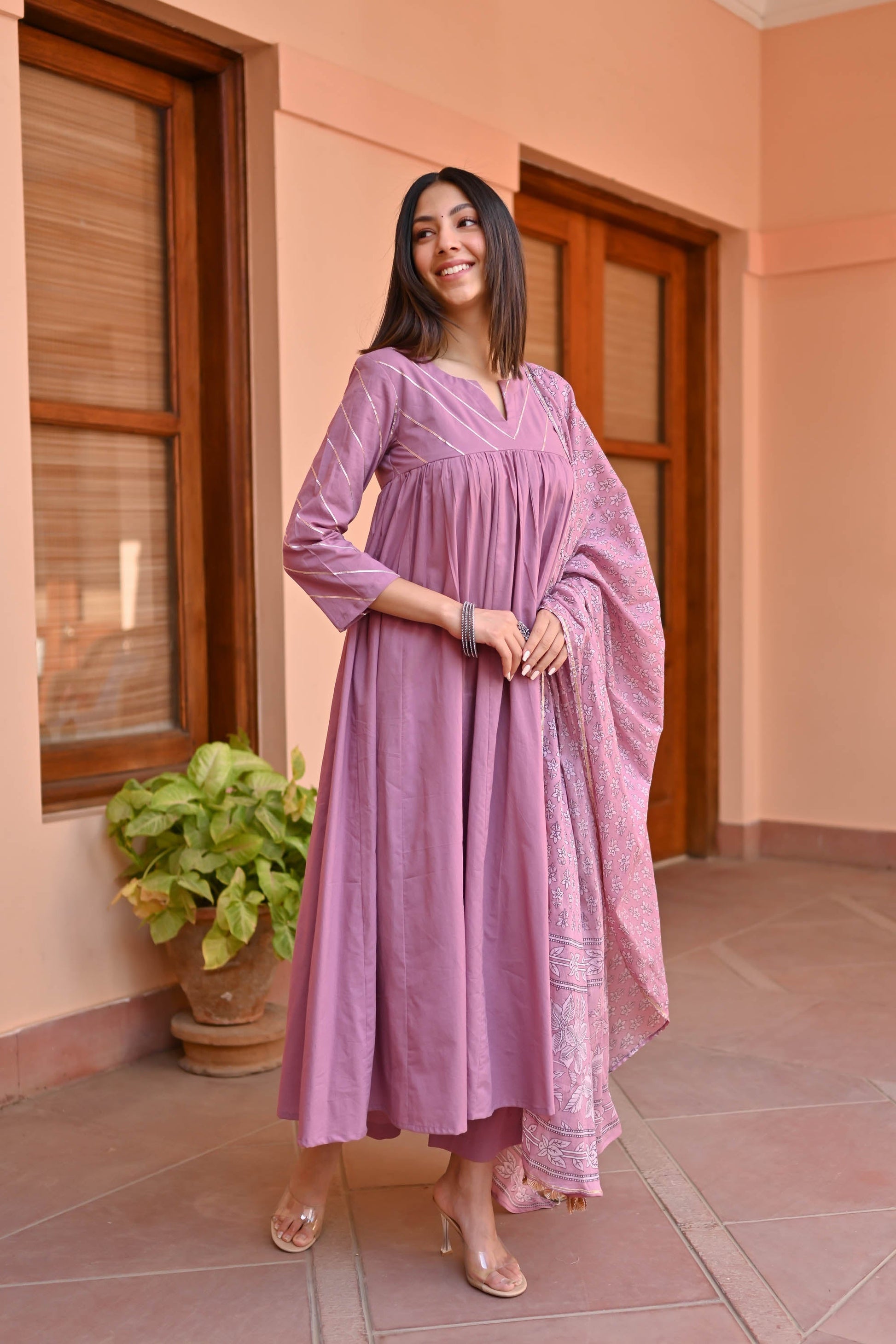 Elevate your style when you dress to perfection in our Mulmul Cotton Suit. Crafted from premium cotton, this Anarkali suit features solid kurta pants paired with a beautifully printed dupatta. Embrace comfort and style in dusty purplish-pink hues, perfect for any occasion. Pakistani cotton suits for women exude timeless elegance and grace, offering unmatched breathability and sophistication. Discover the epitome of chic with our cotton Anarkali suit collection today.