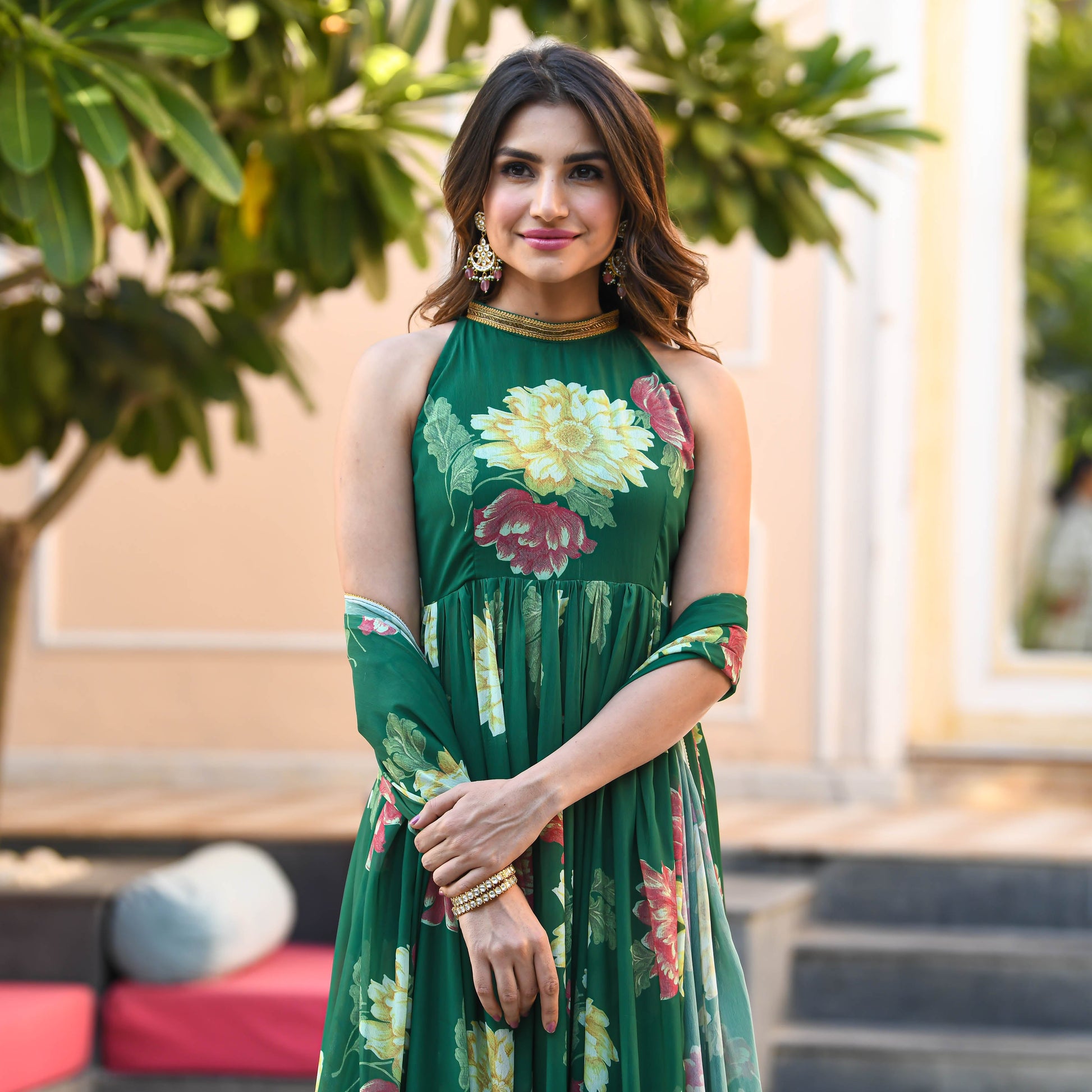 Sakhi Fashions Dark Green Floral Print Georgette Salwar Suit