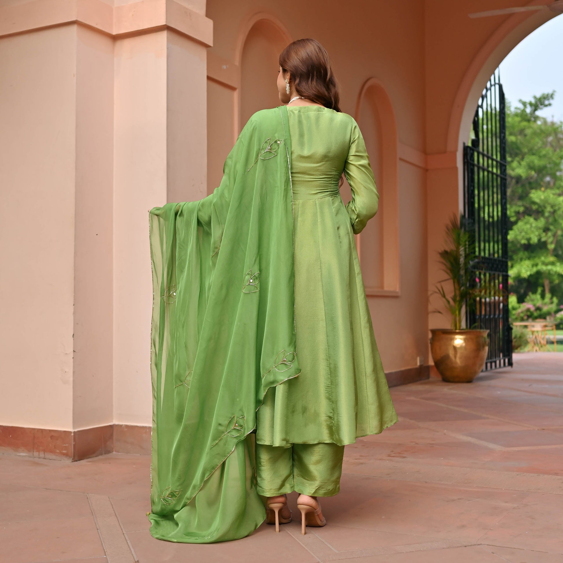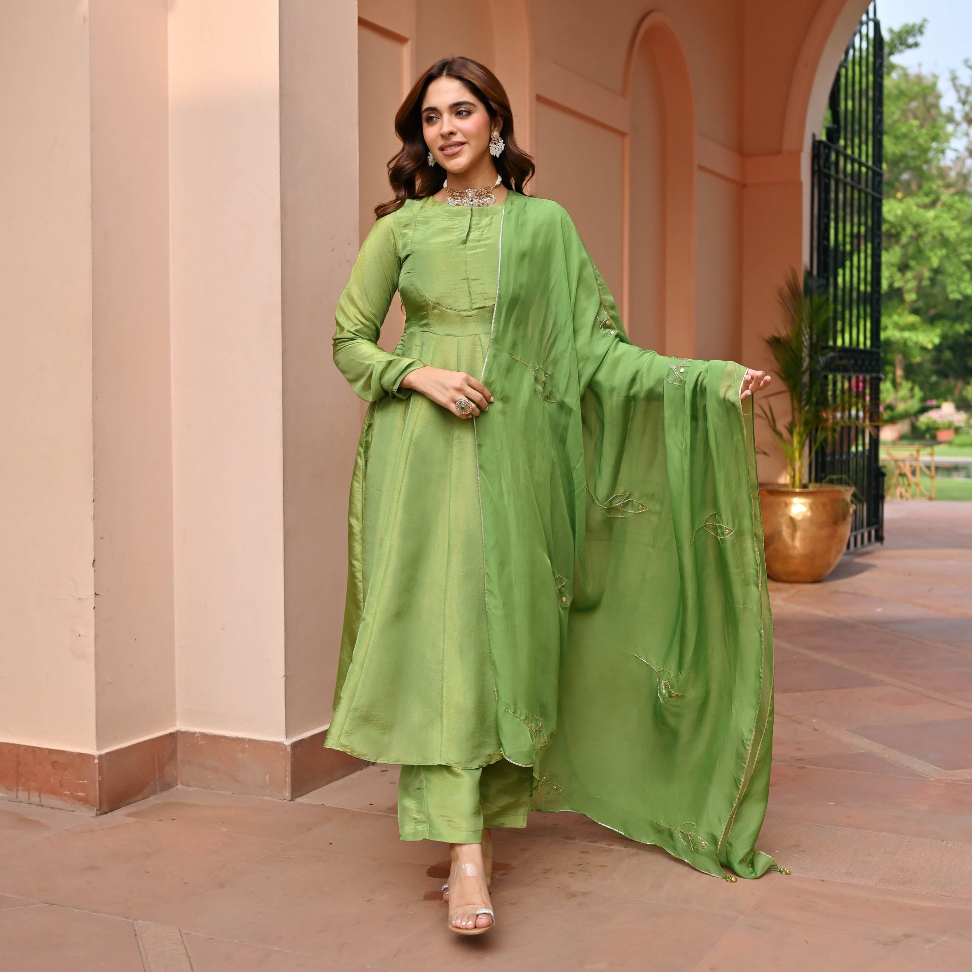 Green Tissue Silk Suit Set