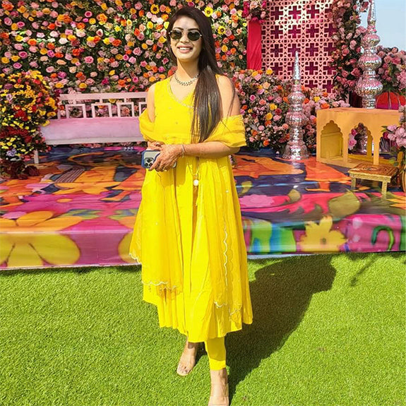 Embrace the vibrant allure of the Heena Suit Set. Crafted from exquisite cotton silk fabric, this set radiates elegance and charm while the cut-dana and sequin handwork adds a sprinkle of sparkle. With its V-shaped neckline and cut sleeves, it embraces contemporary trends while maintaining a touch of traditional flair.
