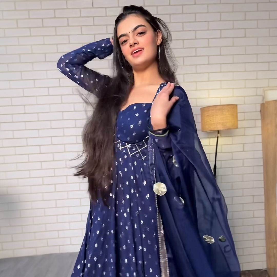 This beautiful Rumi Anarkali Set is crafted from high-quality jacquard fabric for a luxurious look and feel. The full-length anarkali and the full-sleeved kurta are detailed with intricate gotta handwork for an elegant, timeless design. Perfect for any special occasion.