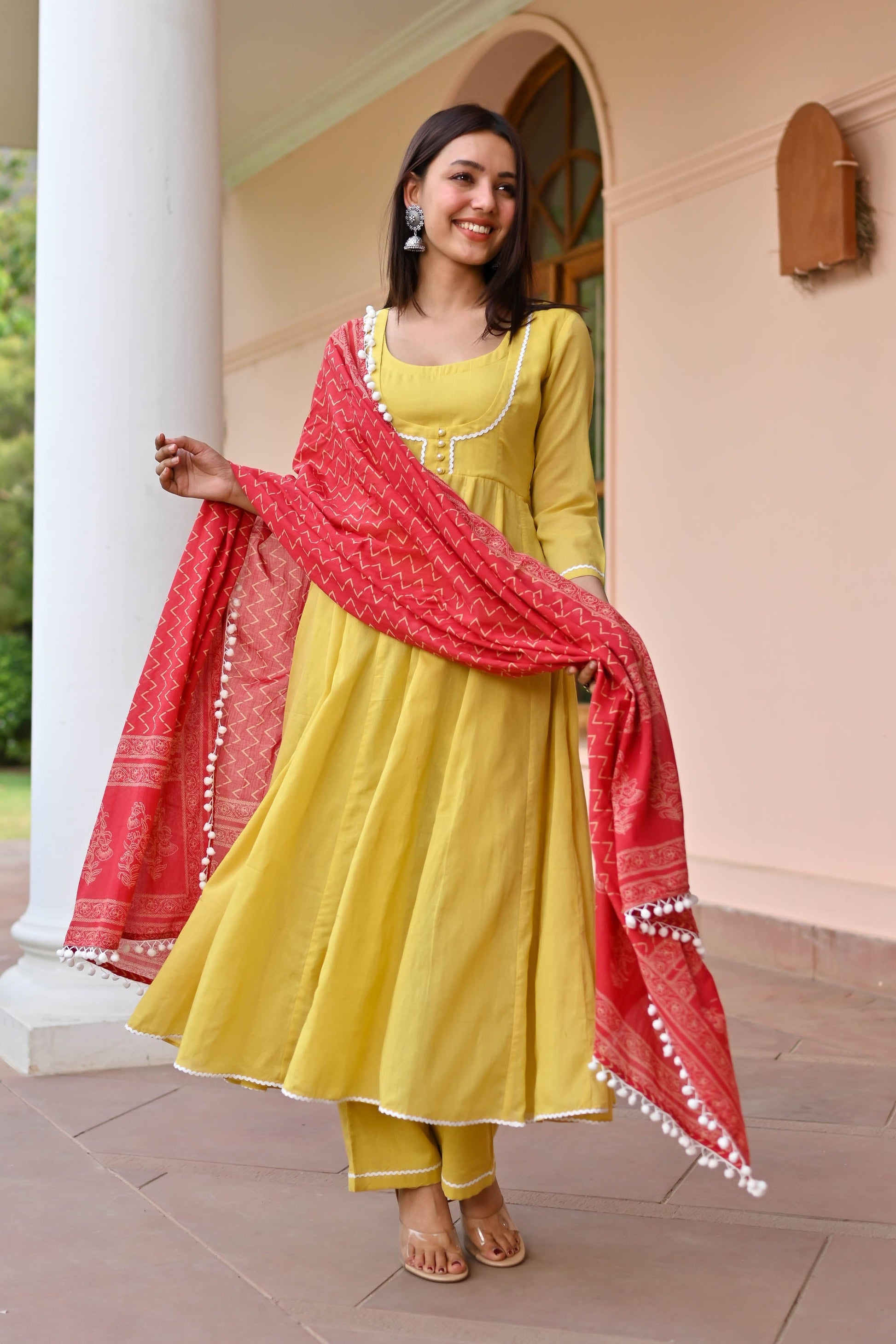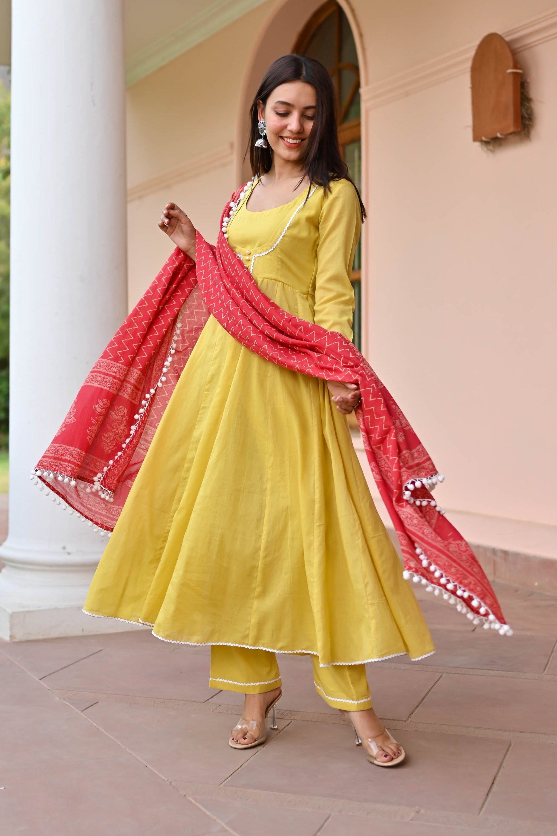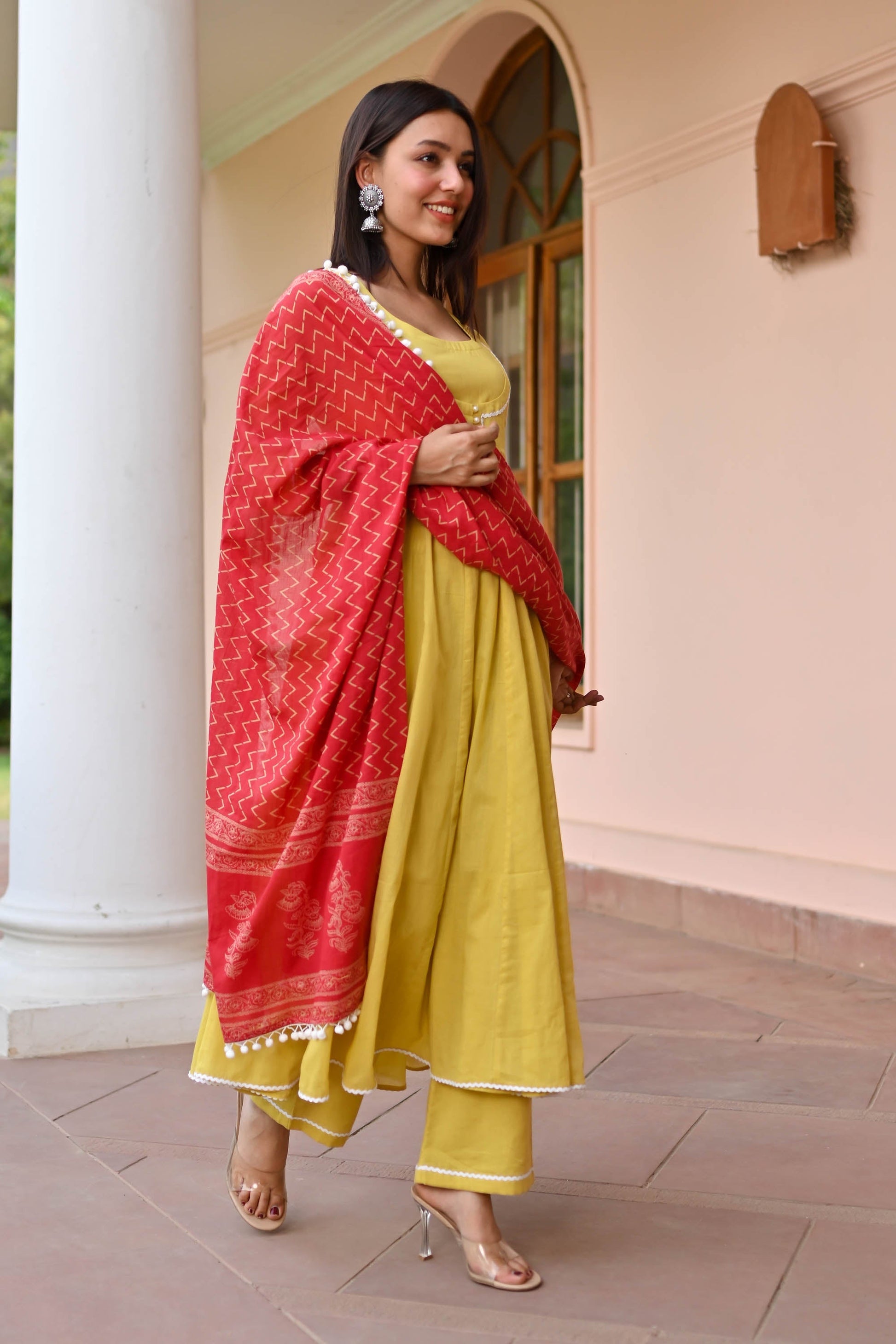 Elevate your style with our Mulmul Cotton Suit. Made from premium cotton, this Anarkali suit features solid kurta pants paired with a beautifully printed dupatta. Embrace comfort and style in vibrant mustard hues, perfect for any event. Pakistani cotton suits for women embody timeless elegance and grace, offering unparalleled breathability and sophistication. Discover the pinnacle of chic with our cotton Anarkali suit collection today.