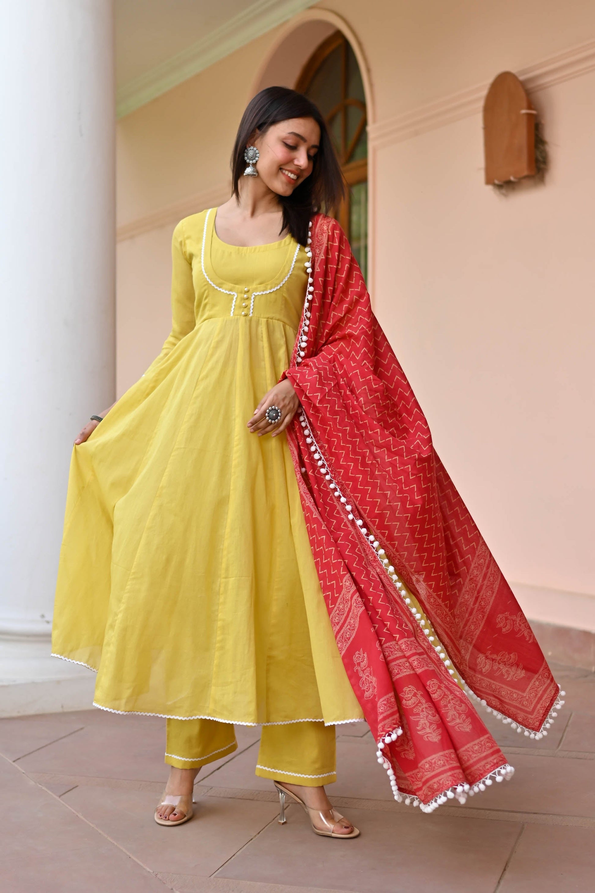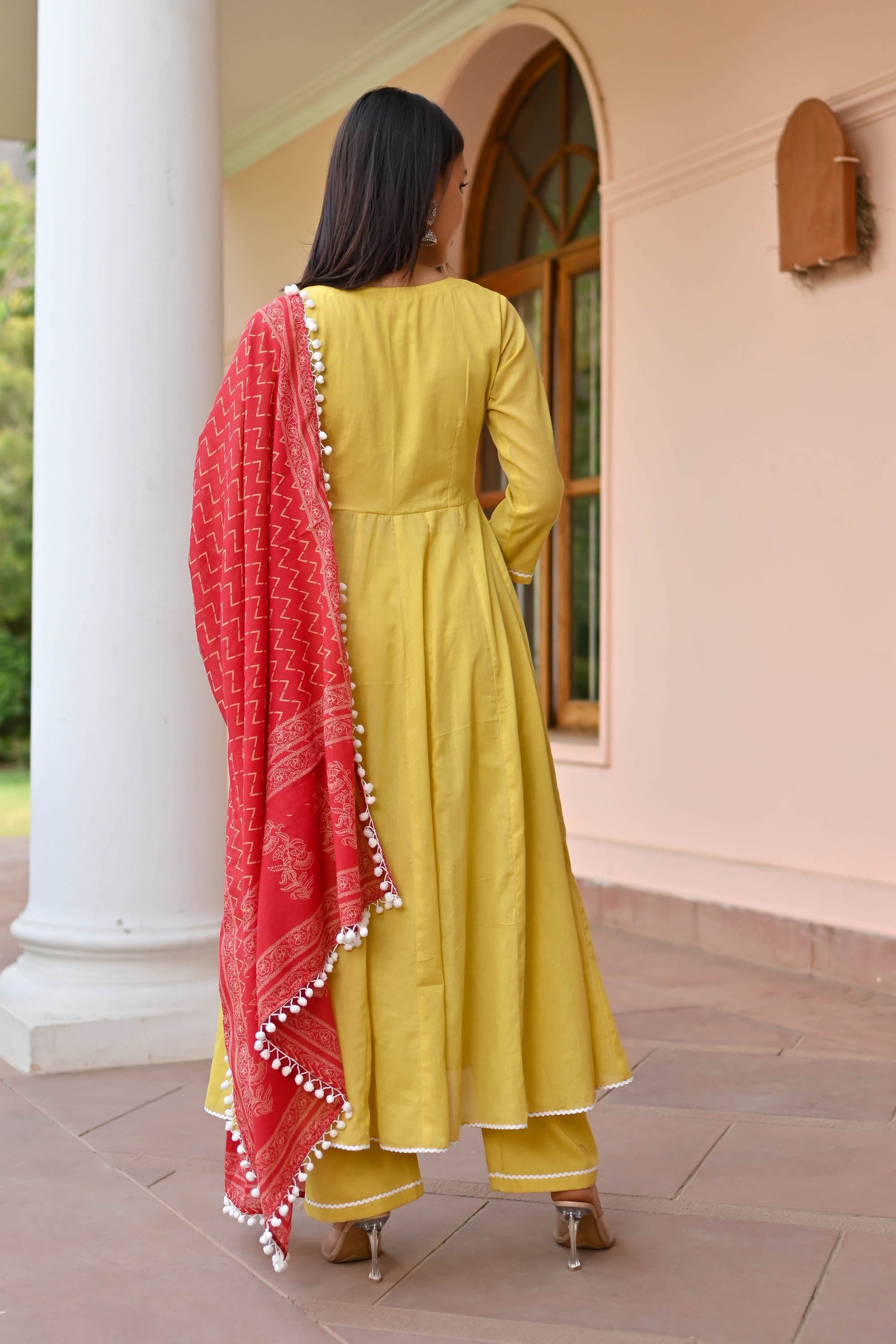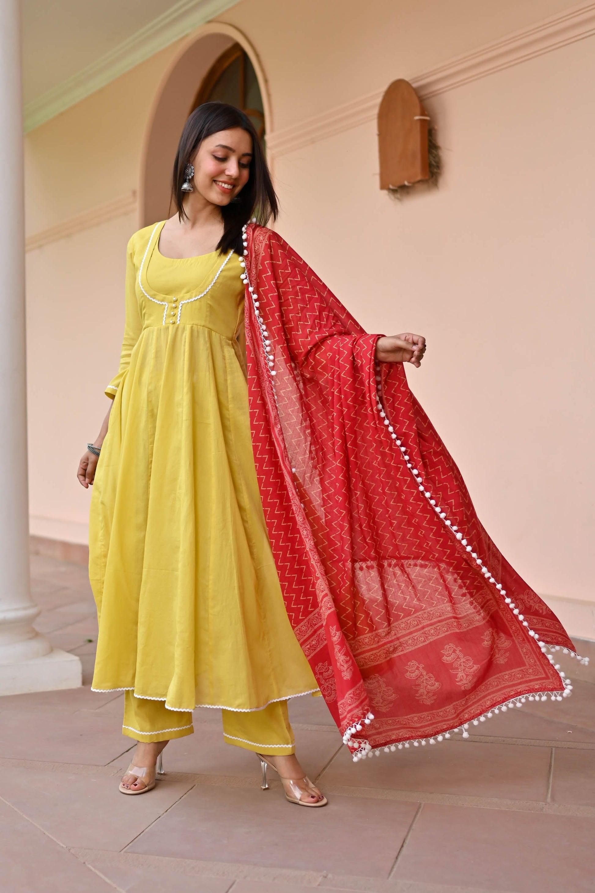 Elevate your style with our Mulmul Cotton Suit. Made from premium cotton, this Anarkali suit features solid kurta pants paired with a beautifully printed dupatta. Embrace comfort and style in vibrant mustard hues, perfect for any event. Pakistani cotton suits for women embody timeless elegance and grace, offering unparalleled breathability and sophistication. Discover the pinnacle of chic with our cotton Anarkali suit collection today.