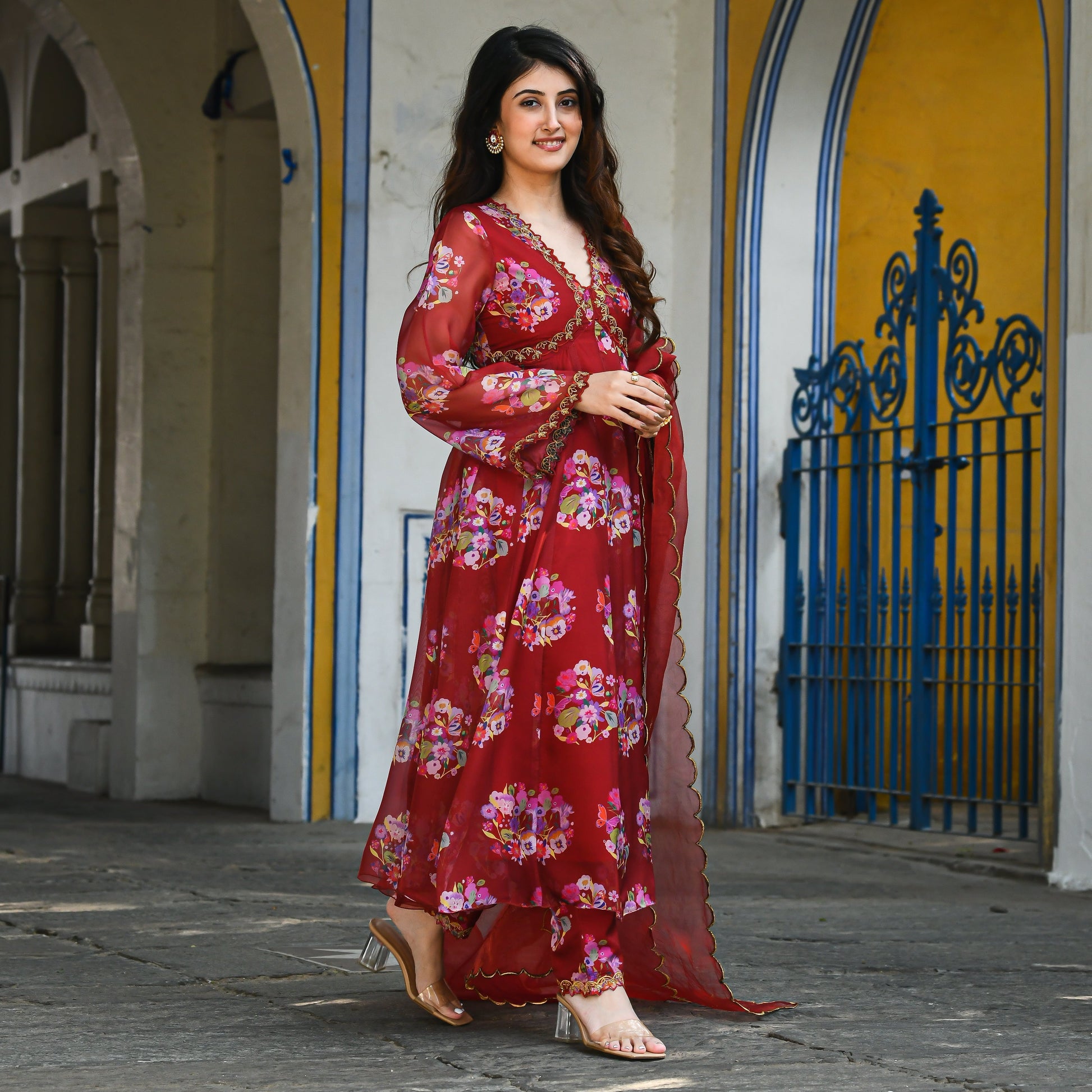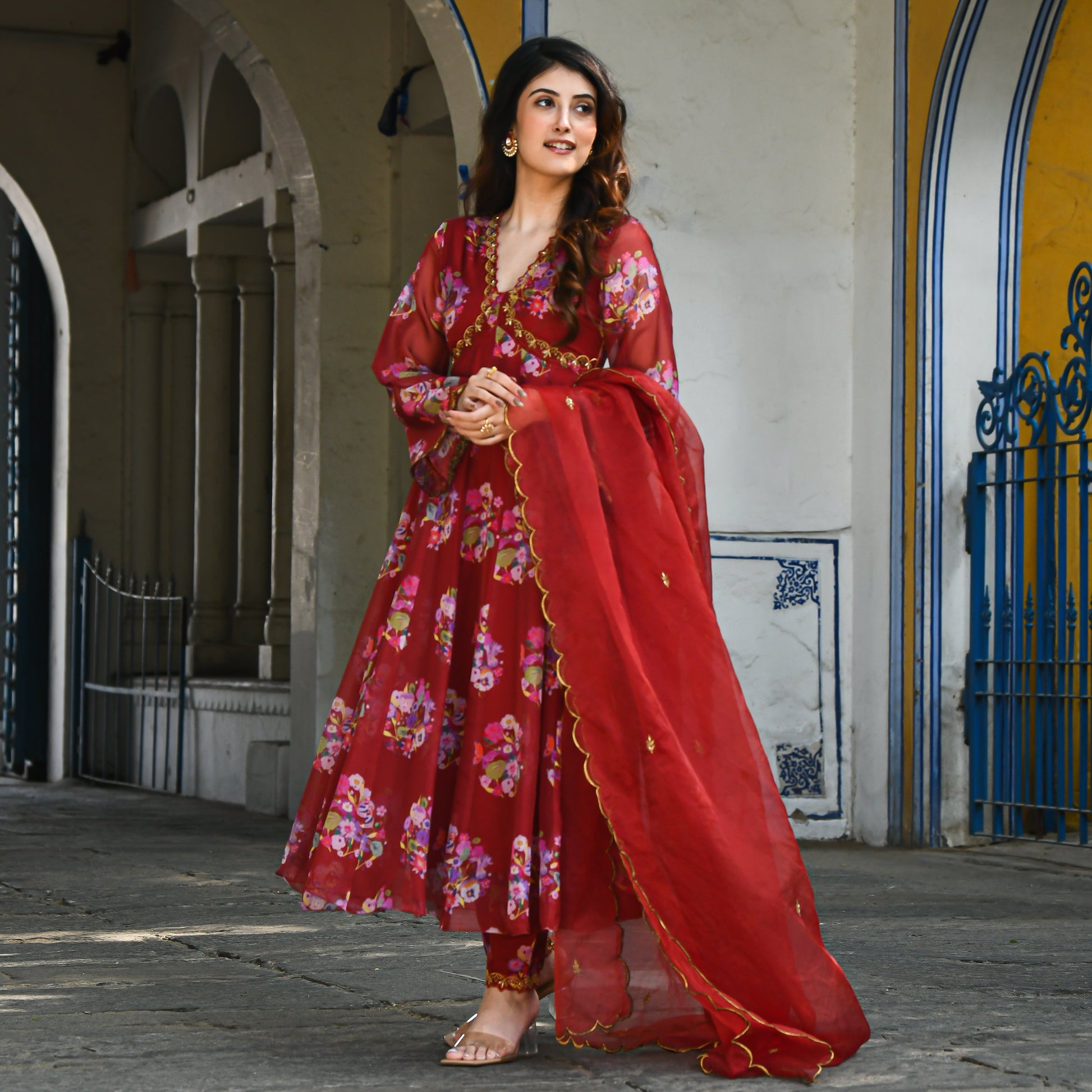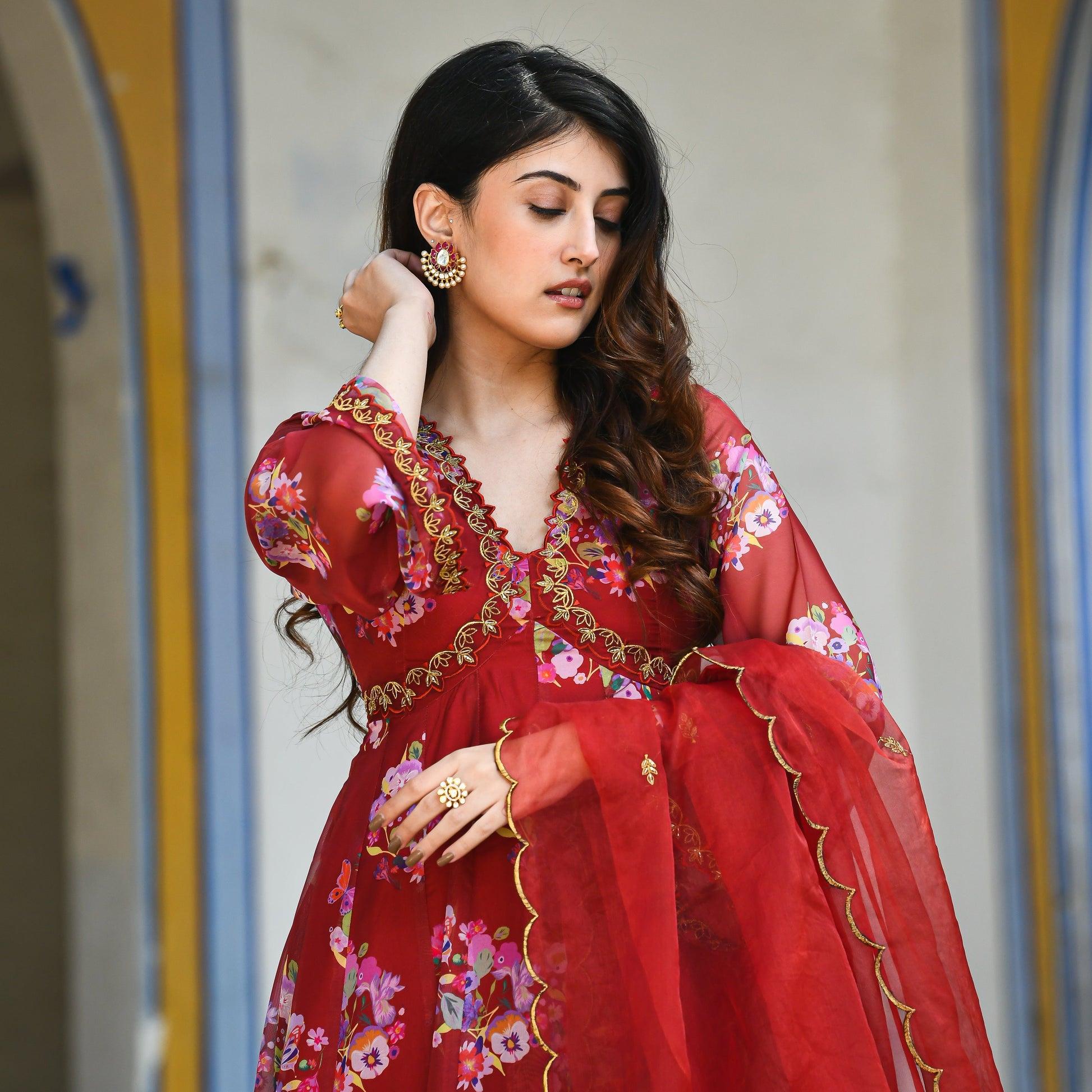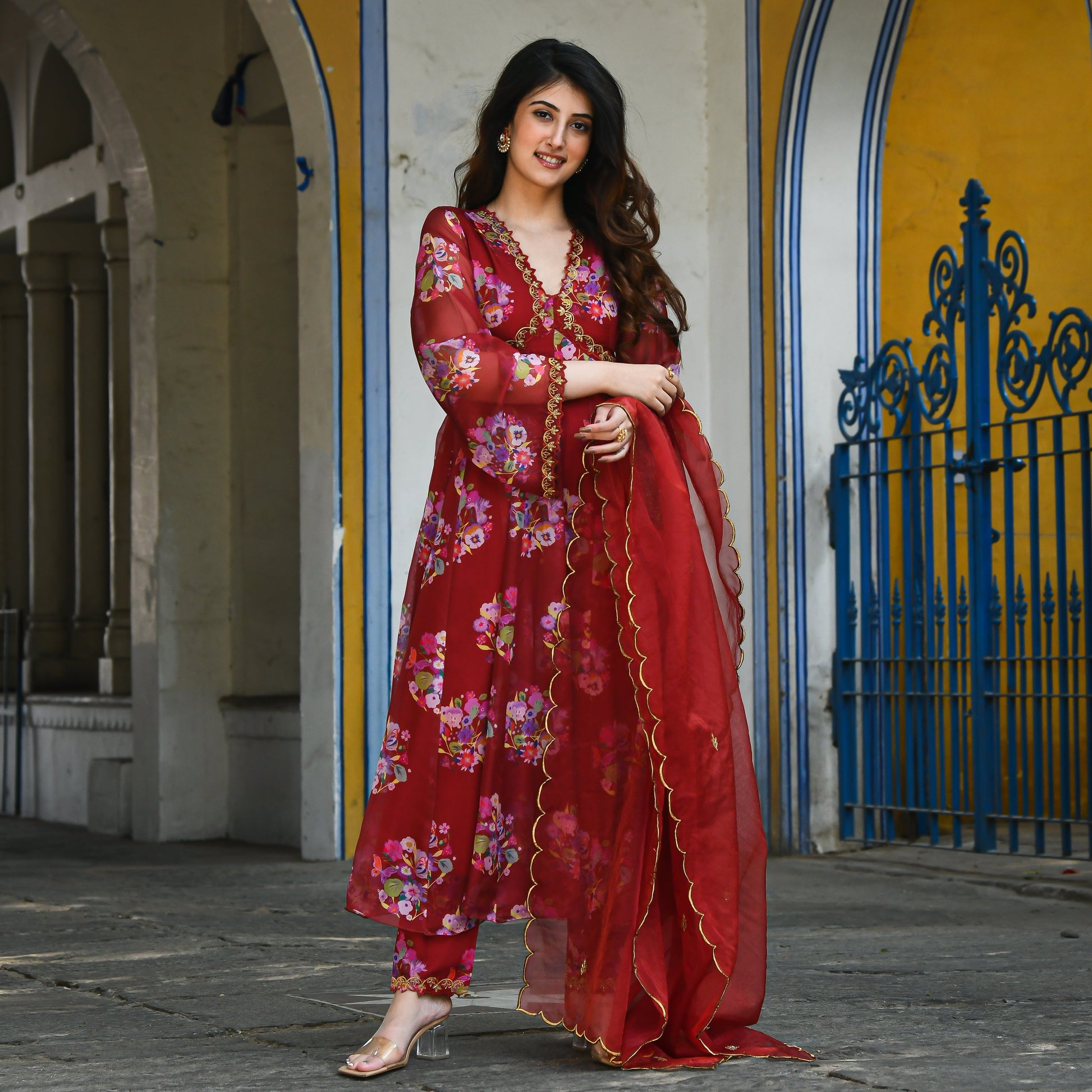 Want to look graceful and stylish? Try our enchanting Saanjh Suit Set. Made from Soft Organza fabric, it features a stunning digital print. The dupatta is adorned with glittering zardozi and sequin work that is sure to make you stand out wherever you go. Get ready to dazzle in this gorgeous artistic statement outfit now.