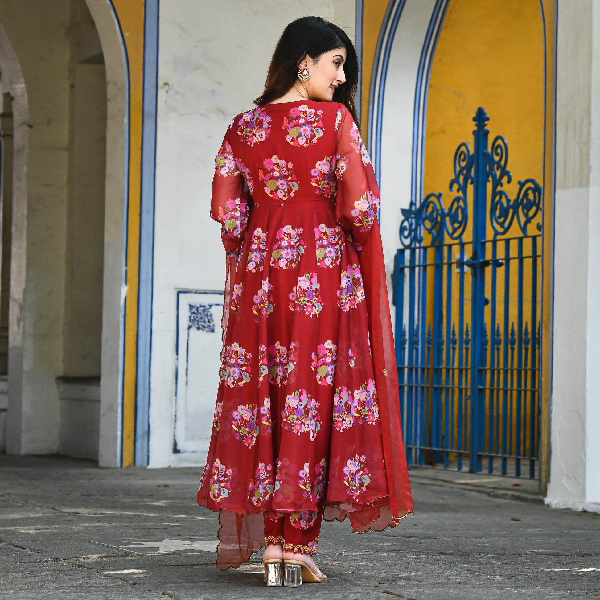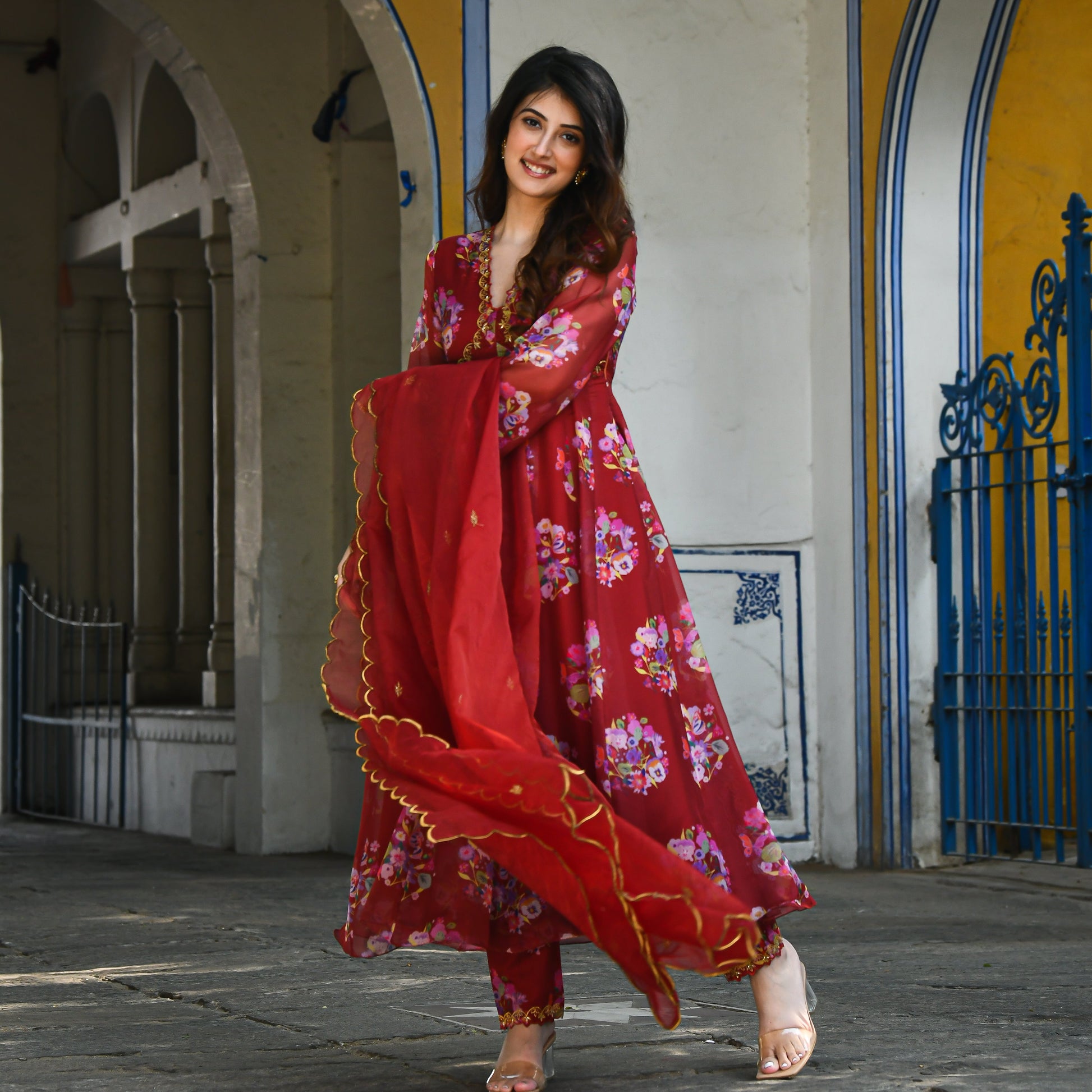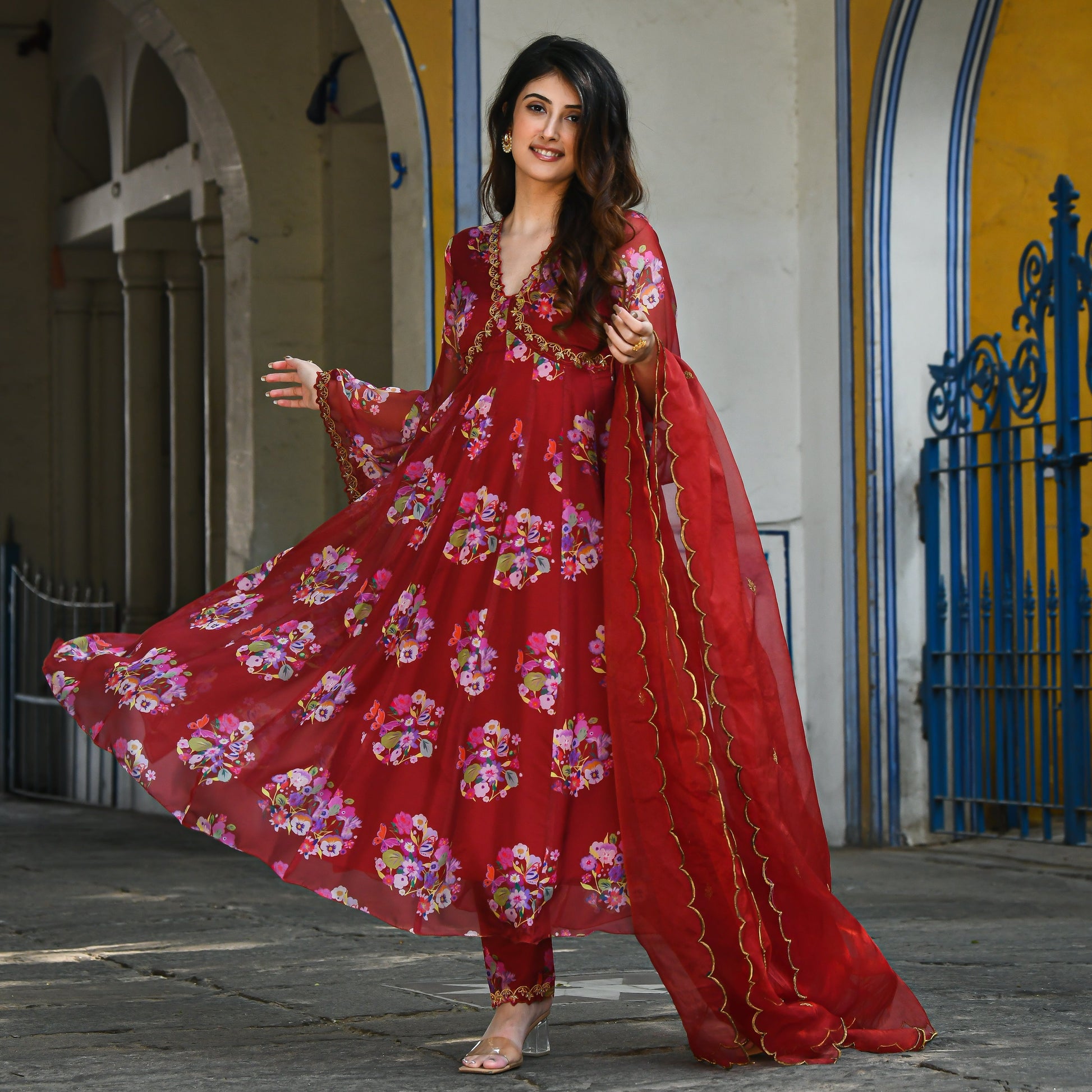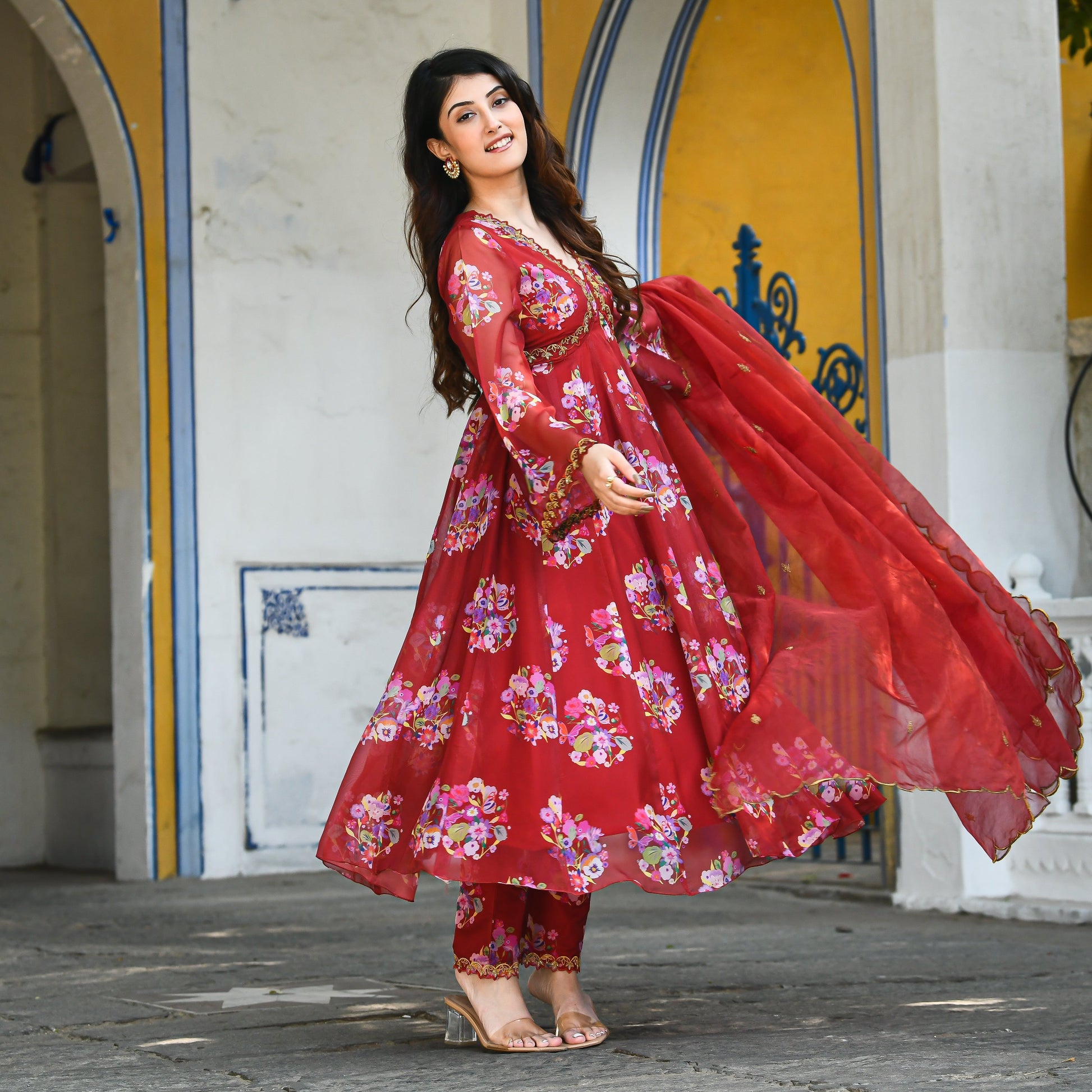 Want to look graceful and stylish? Try our enchanting Saanjh Suit Set. Made from Soft Organza fabric, it features a stunning digital print. The dupatta is adorned with glittering zardozi and sequin work that is sure to make you stand out wherever you go. Get ready to dazzle in this gorgeous artistic statement outfit now.