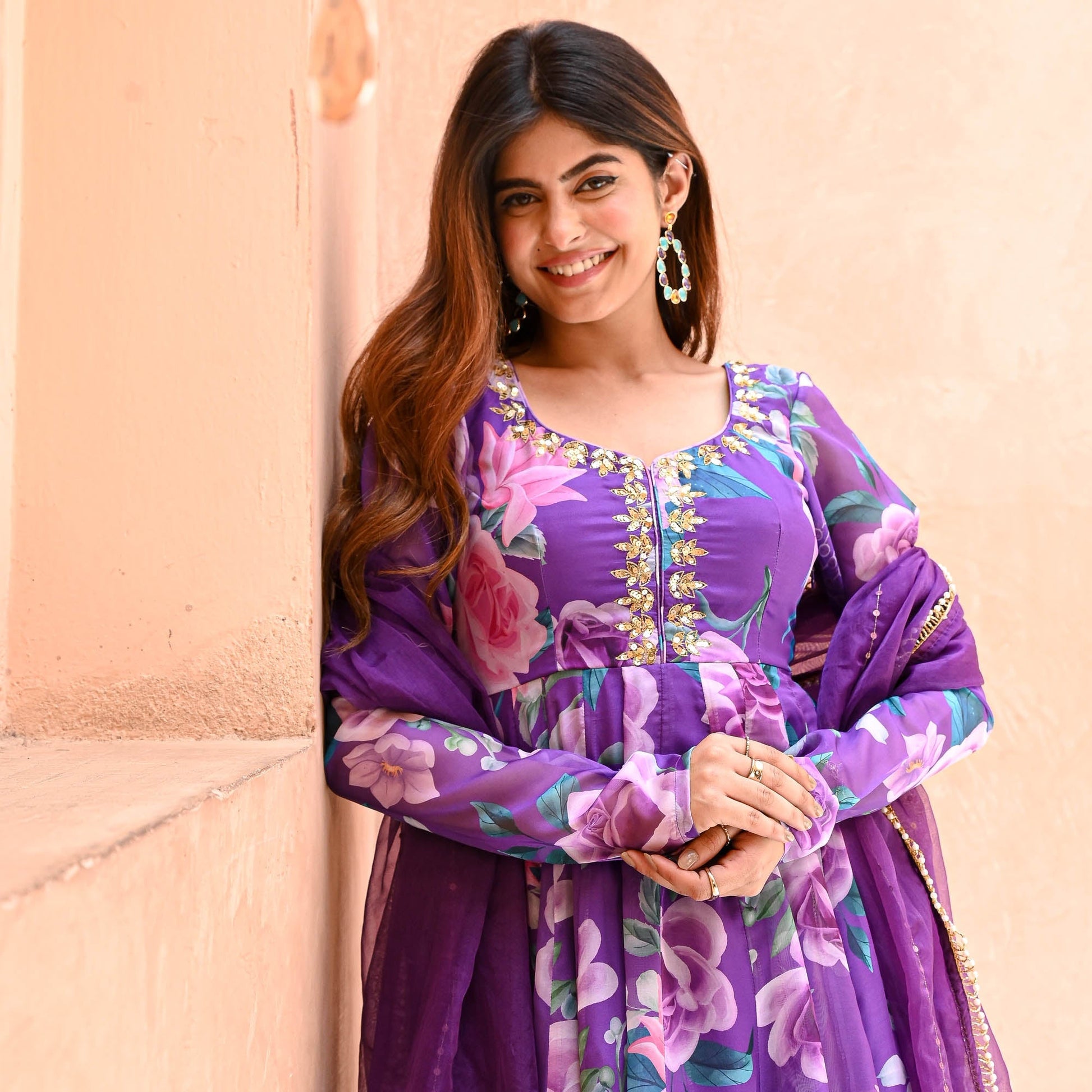 Explore our digitally printed stunning purple organza designer suits, perfect for elegant occasions. These suits for women include stunning sharara suit designs and classic salwar kameez styles. Our women suit set is ideal for weddings, offering luxurious ladies suits with intricate details. Elevate your wardrobe with these exquisite wedding suits for women, combining tradition and modernity effortlessly.